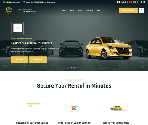 A ecommerce website for cars renting with a custom CMS and Visual Page Builder.